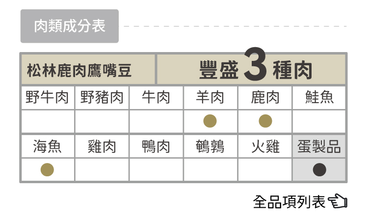 嚴選多樣化純肉食材,更貼近原始生活樣貌。