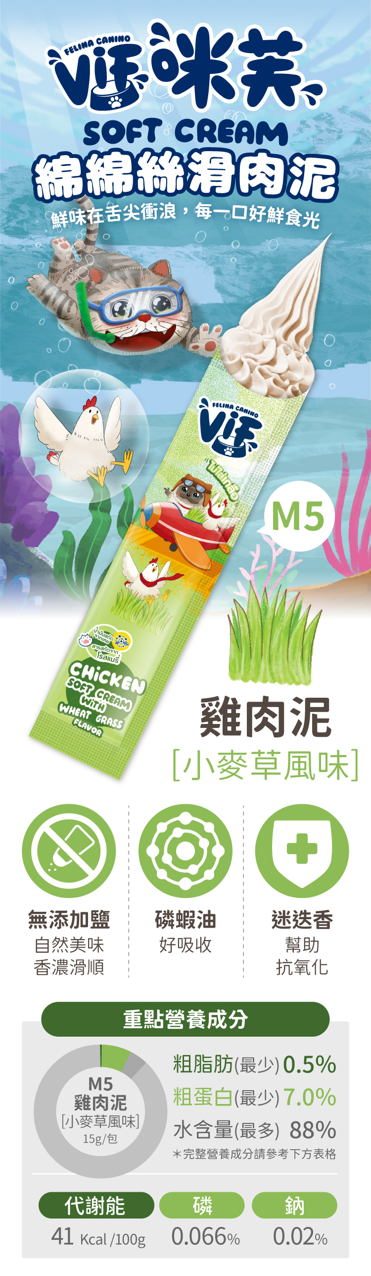 咪芙 ViF® M5 雞肉泥佐小麥草風味 綿綿絲滑肉泥特選食材